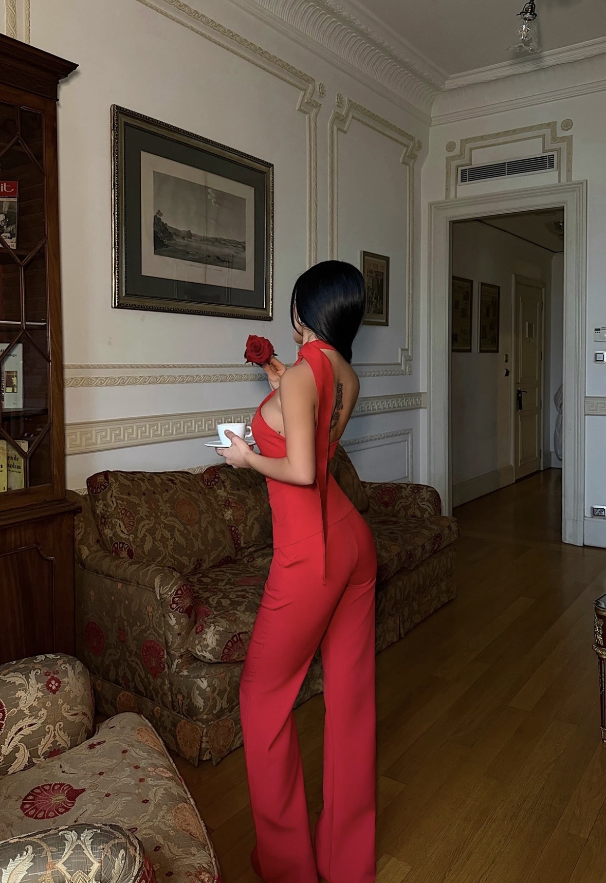 Κοκκινο σετ με halter top και κουμπια μπροστα, συνδυασμενο με ψηλομεσο παντελονι σε ανετη γραμμη. Κομψο και θηλυκο, ιδανικο για εντυπωσιακες εμφανισεις.