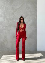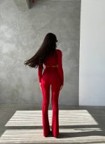 Σετ τοπ-παντελονα με στρας, στενη γραμμη.Για εντυπωσιακες εμφανισεις